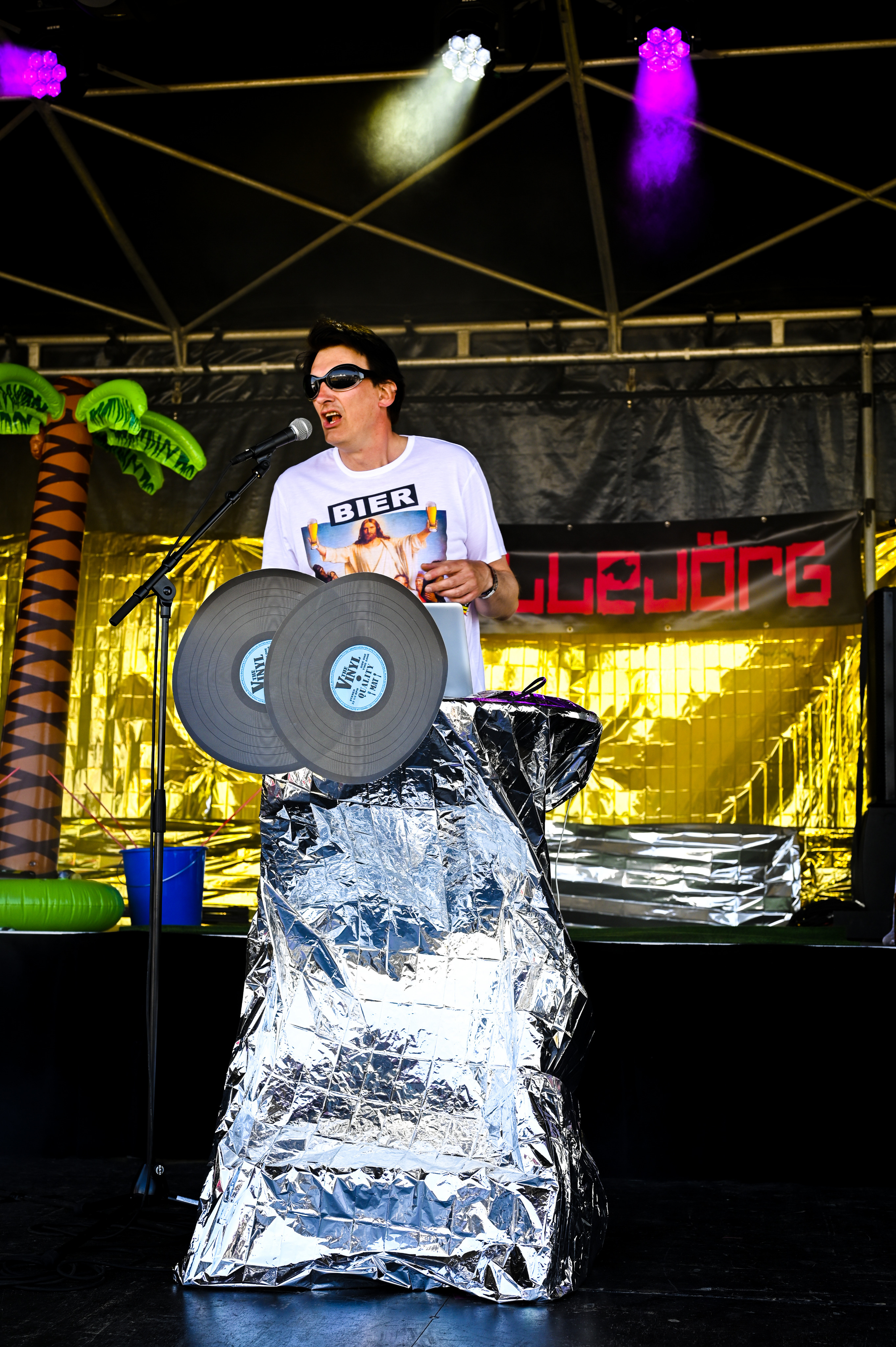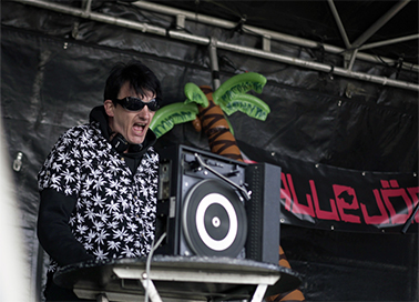 Der palmengroße Mallejörg liefert kleine und große DJ-Sets aus den Genres Elektro, Hip-Hop, 80er/90er-Hits oder Punkrock. Für 20 Minuten oder auch einen ganzen Abend. Inklusive Schnapsrunde, Ballons, Konfettikanone und trashiger Bühnendeko.